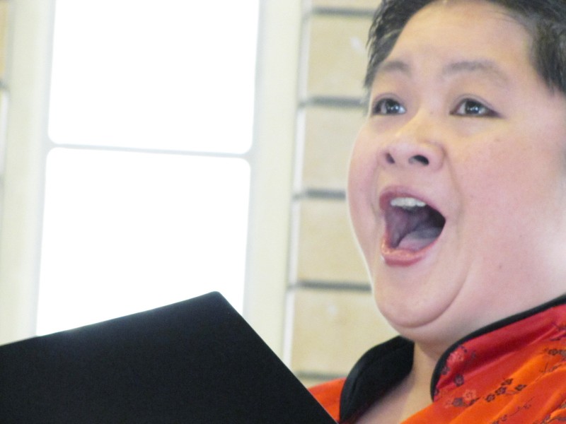 This was quite a range of songs. Louise started with Joy to the world. Piano accompanist, Phillipa Candy, had arranged this with screeds of diatonic chords that rippled up and down the keyboard. I liked this, as I liked her accompaniment for the whole concert: capable and responsive, while obviously reading the charts. By the end of the session, I noticed, too, how rich and relatively deep and mature was Louise’s voice. All these voices could fill this small room with power and volume, but Louise’s was that much more even and purposeful in her interpretations. I chuckled that the words (Italian or English) remained unintelligible, but the quality was undeniable. Then on through a range of songs: some Australian carols including Wilfred Holland’s Bethlehem that I know from choir days; the common but delicious Bach/Gounod Ave Maria that Louise dedicated to birthing mothers; even pop hits like O come all ye faithful. And through several other, very differently sounding soprano voices. I particularly liked the tune No lullaby need Mary sing, by Joseph Clockey, that displayed unexpected modern melody. Katherine Warren sang that one. O Holy night, by Adolphe Adam, has to be my favourite carol. Julia Wee sang that one. There were humourous ones, like the rejigged lyrics of My true love gave to me, which Louise introduced wryly “for all the mercenary habits we’ve come to accept”. Louise claimed one of her favourites was Robert MacGimsey’s Sweet little Jesus boy, which is written as a black American spiritual with blue notes. There were also songs I think I’ve never heard, perhaps not surprising given the paucity of carolling in my life. I doubt I’ve ever heard Little road to Bethlehem, by Michael Head, which Pamela Andrews sang. I loved it when when we heard some harmonies. First was The silver stars, by William James, where Louise and Sarah Campbell sang together. Then the audience singalong led by pairs of singers with raised voices throughout the chapel. Everyone has to know these superhits: The first Noel; Hark the herald angels sing; O come all ye faithful. That was fun all round. Complete with Louise authoritatively singing a complex counterpoint that had me striving to hold the tune.What a lovely and satisfying way to while away a lunchtime. Immensely better than … ugh … Christmas shopping. Louise Page (soprano) led various combinations of the sopranos Katherine Warren, Pamela Andrews, Julia Wee, Sarah Campbell and Petra Lindsay with the accompaniment of Phillipa Candy (piano).